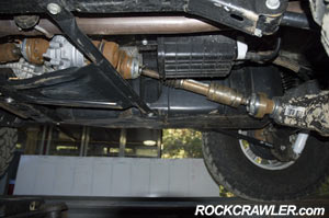 One other thing of note is the driveshaft angles. While the Jeep was on the lift it was apparent that the JK's fixed yoke shafts were about at their operational limits. The style of C/V joint used is not made to take the abuse of more severe angles found on lifted Jeeps when used off-road. Why Jeep used them, nobody seems to know. While we didn't notice any binding or problems during our trail testing, time will tell whether they will hold up long-term. Tom Wood and JE Reel are already working on JK conversion kits to use traditional C/V joints. Understand that this angle issue is inherent to the JK and is a problem that every suspension manufacturer will have - not just Superlift.