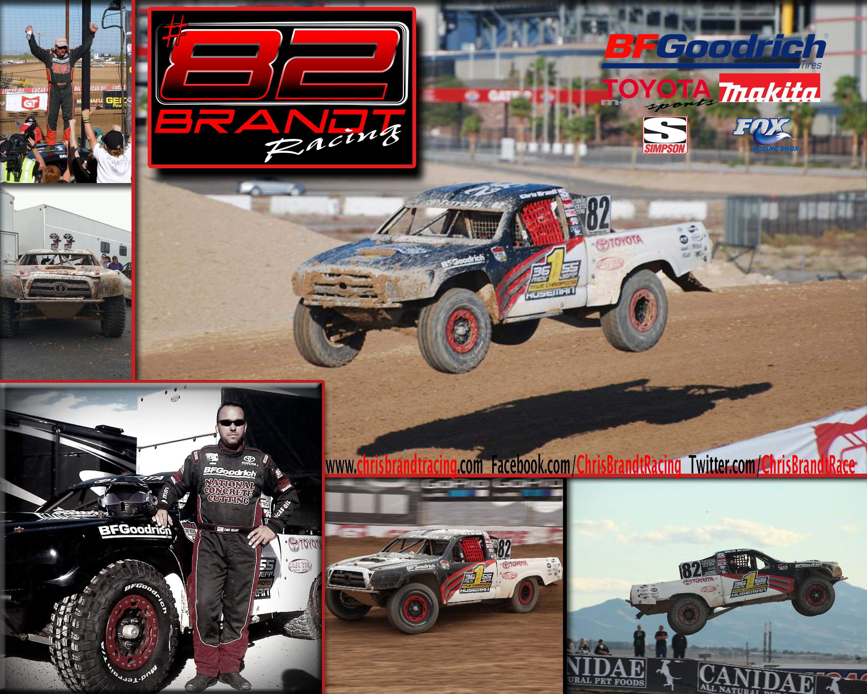 COUNCIL BLUFFS, IA DECEMBER 6, 2011 – Chris Brandt #82 BFGoodrich / Toyota Pro Lite Unlimited Truck will be at the final round of the Lucas Oil Off Road Racing Series in Phoenix, Arizona at Firebird Raceway this Saturday, December 10th. With 12 podium finishes Brandt has lead the points all season but fell 3 points behind Brian Deegan after the last Las Vegas rounds. “This weekends race is the last chance to determine the series champion. With only 3 points separating Deegan and I, you know it will be the must see race of the season!” said Chris Brandt.