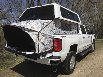 Camper tent packages are available and sold separately to create an enclosed sleeping and storage area. The tent option is constructed of durable ripstop nylon fabric in a choice of outdoor patterns and solid colors and features Velcro attachments and two screened side windows.