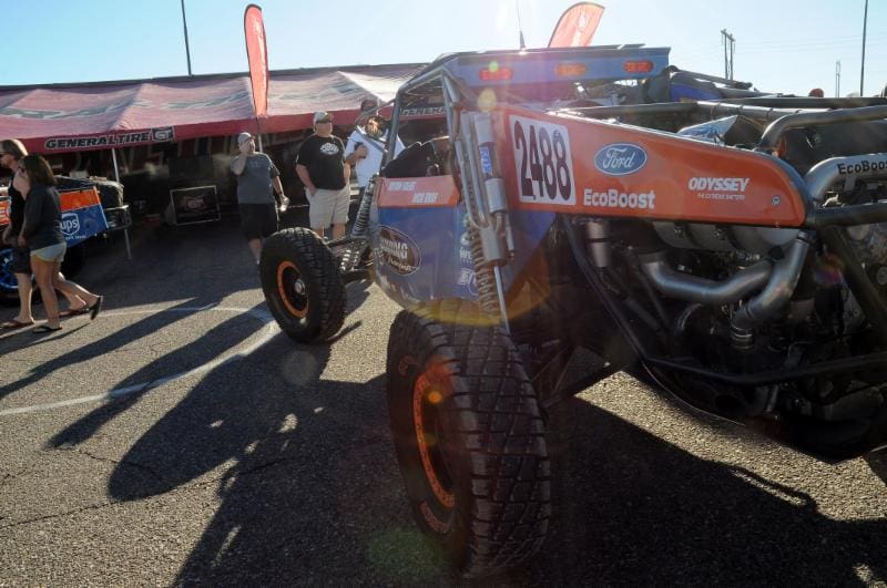 A quick top off with fuel, a fresh driver, Lee Banning Jr., their KC HiLites bar to guide them through the night and just like that they were back out on the course making their way towards the finish. The night sky and the cooler air temperatures really helped the truck run better. Heavy traffic and dust did not stop them from making it across the finish. The #6155 truck finished 6th in class after fighting issues all day. The relief to have finally crossed the finish line was well worth celebrating.