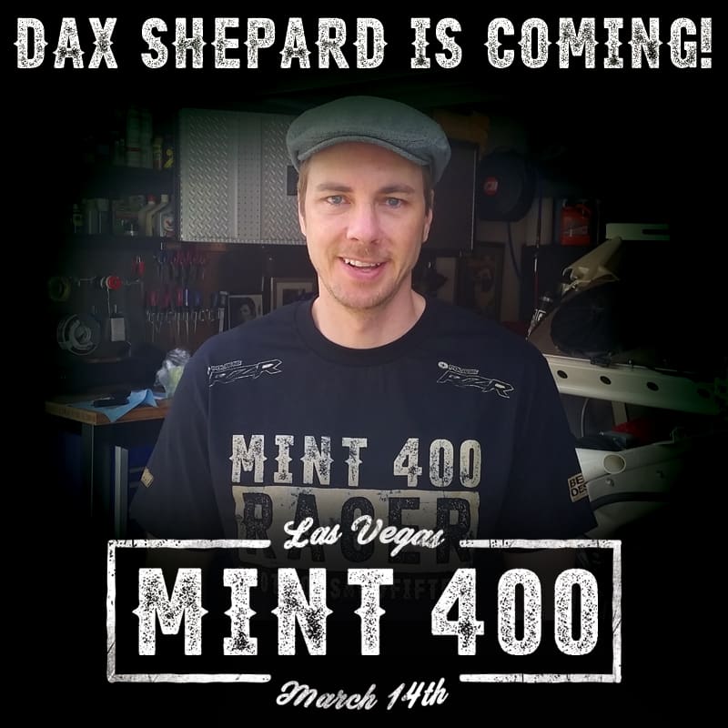 Dax Shepard is no stranger to racing either. He competed in the “American LeMans Super Trofeo Series” earlier this year and is an avid off-roader and motorsports enthusiast. “I love motorsports and off-road racing. I’ve raced a Class 1 car and spent a lot of time in Glamis. The Mint 400 has always been one of those races I wanted to compete at. I am looking forward to the battle against the field, and the brutal course itself,” commented Shepard.